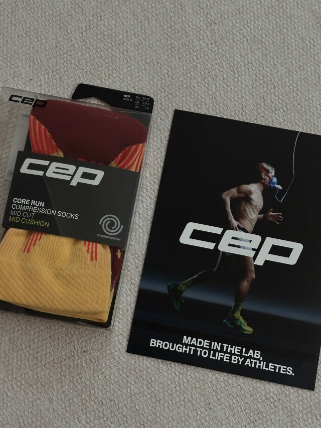 품명 : CEP 코어 런 미드컷 삭스 V5 마리골드/버건디 남성용